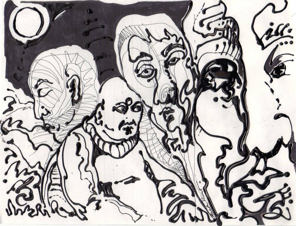 Da Vinci and a querulous exasperation with Man Ray. His own artistic style - a mix of psychedelic madness and stream-of-